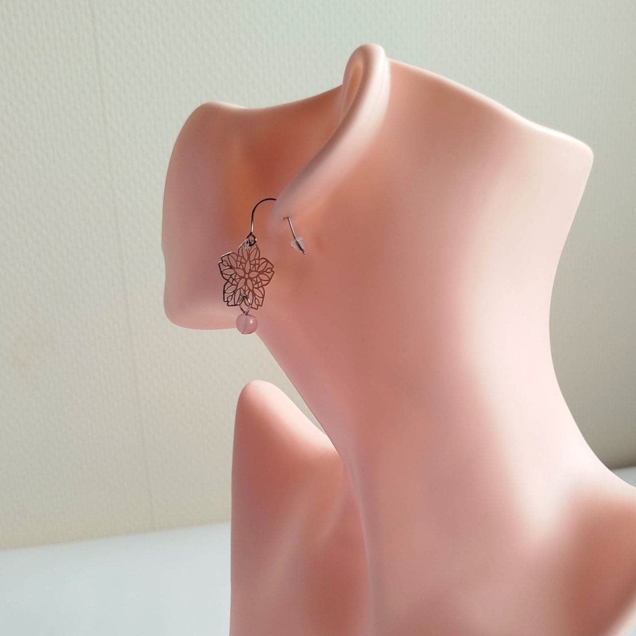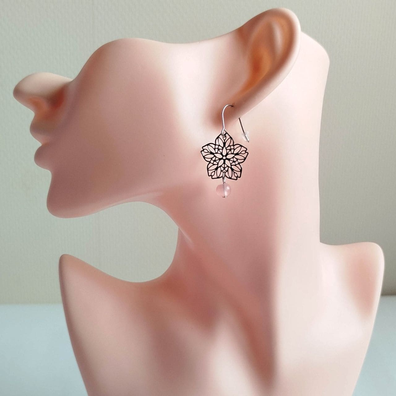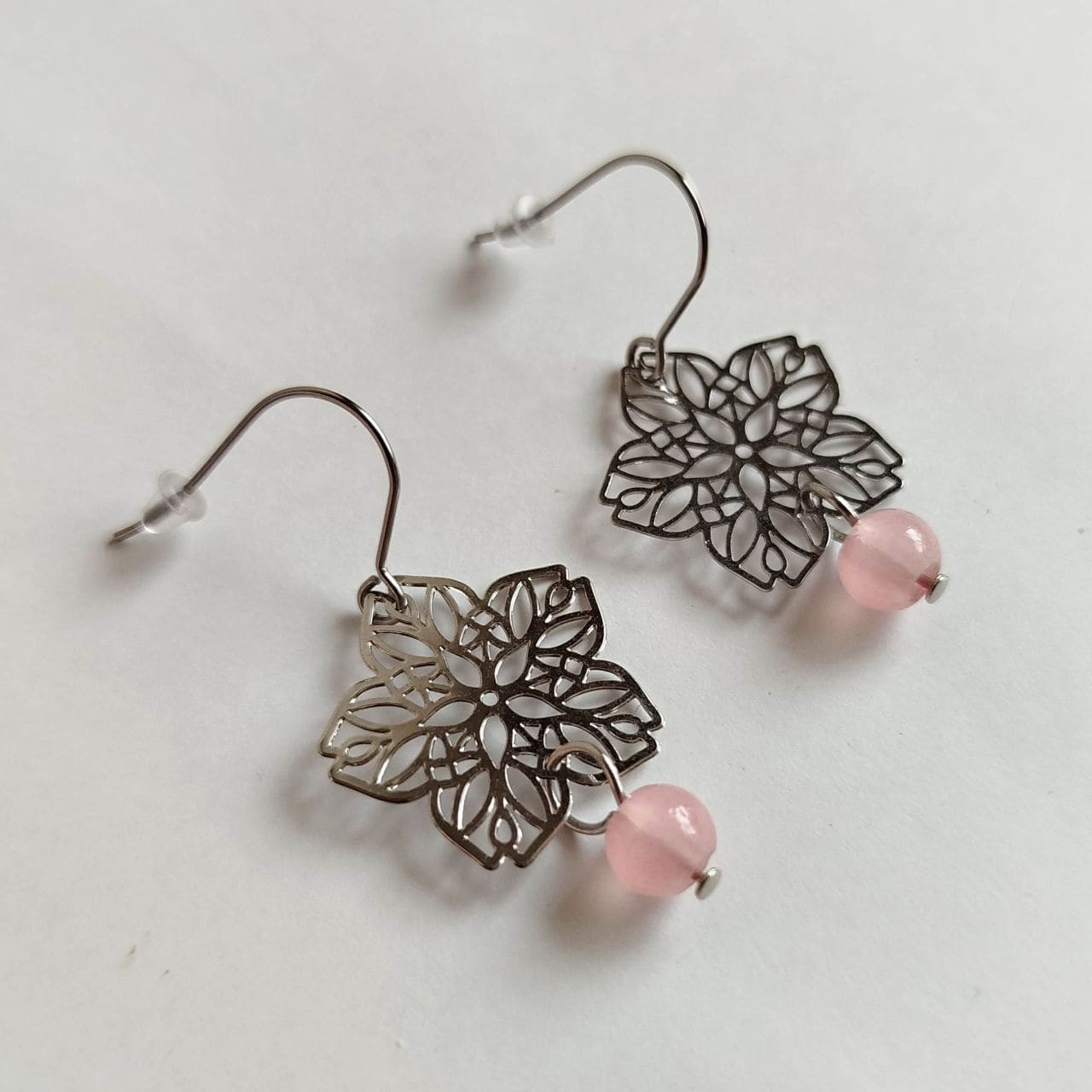 Orecchini Sakura a Filigrana Traforata – Ottone Rodio con Perla Acrilica Rosa Chiaro