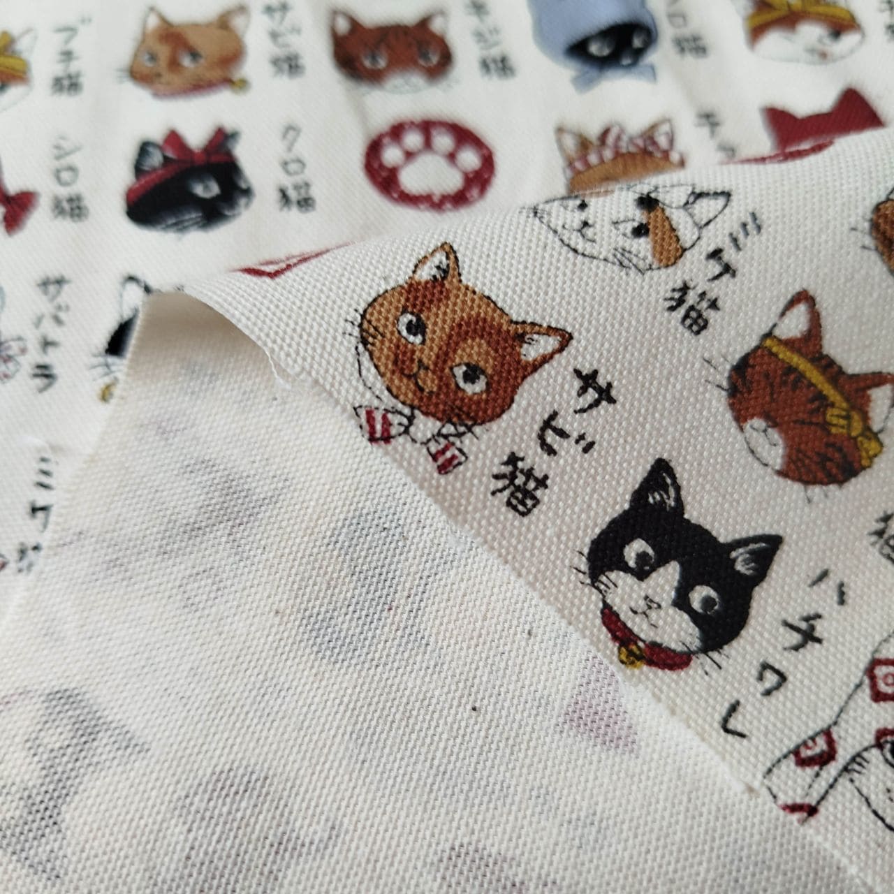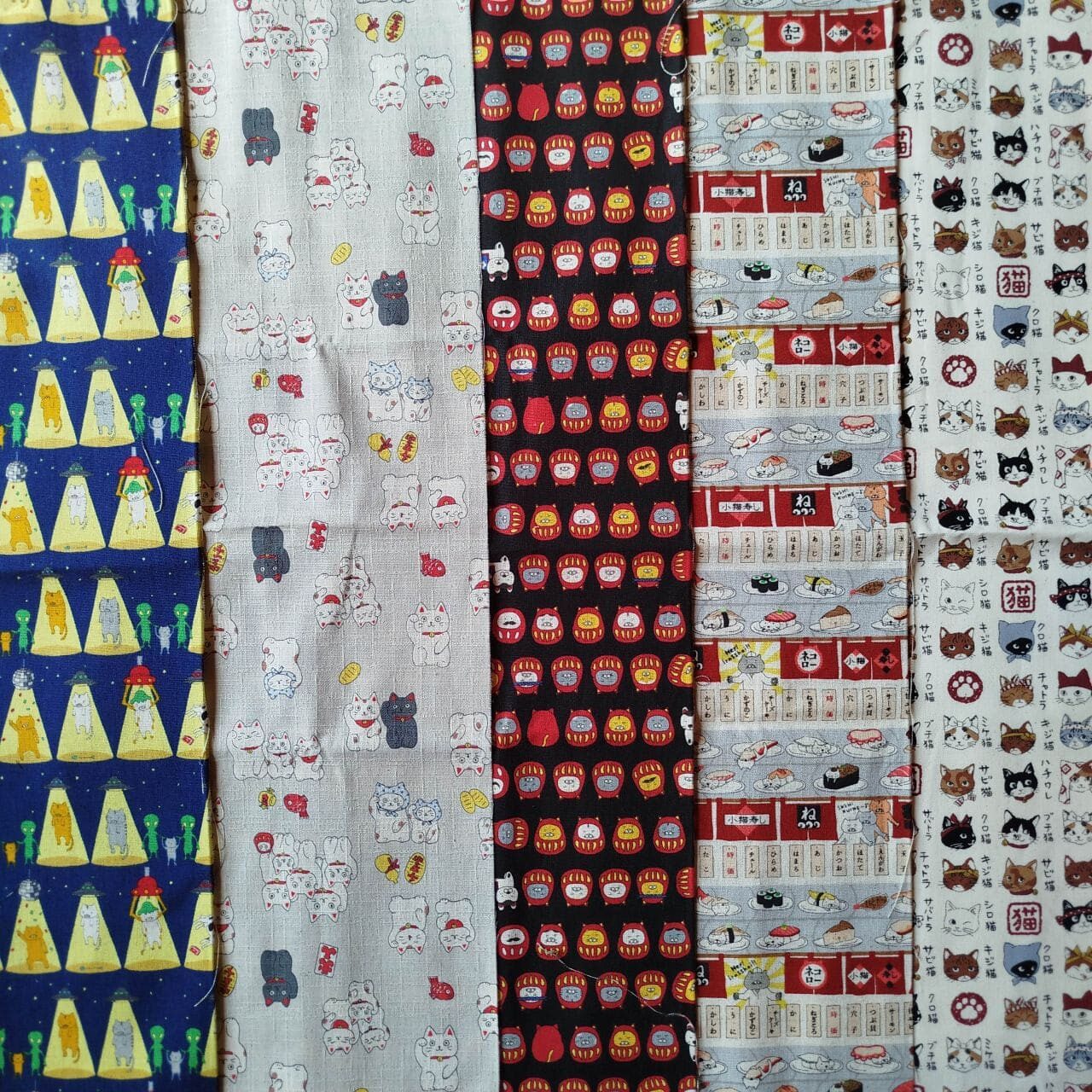 Japanese cat fabric bundle with 5 unique designs (50x50cm each).