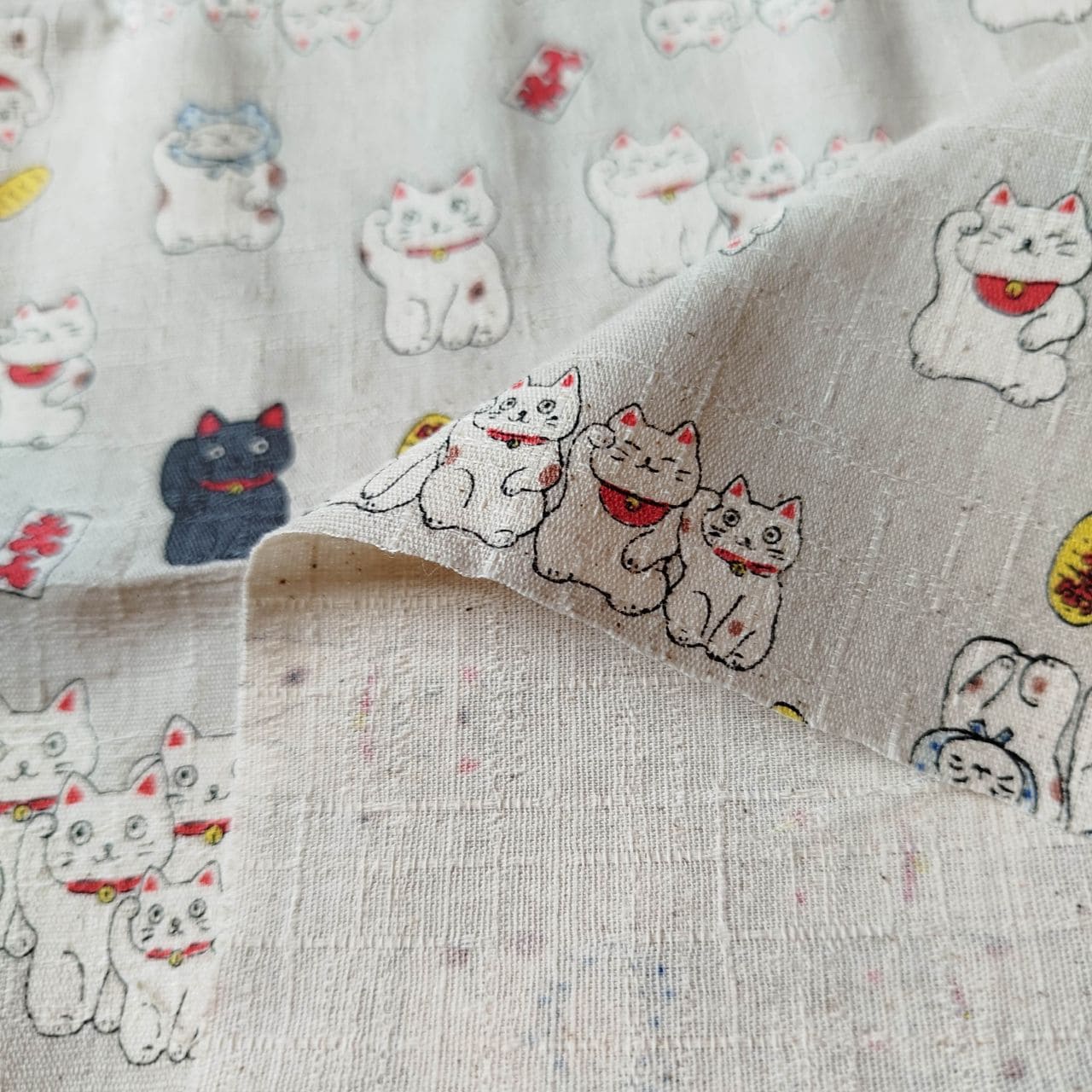 A playful mix of traditional Japanese symbols and modern kawaii cat designs.