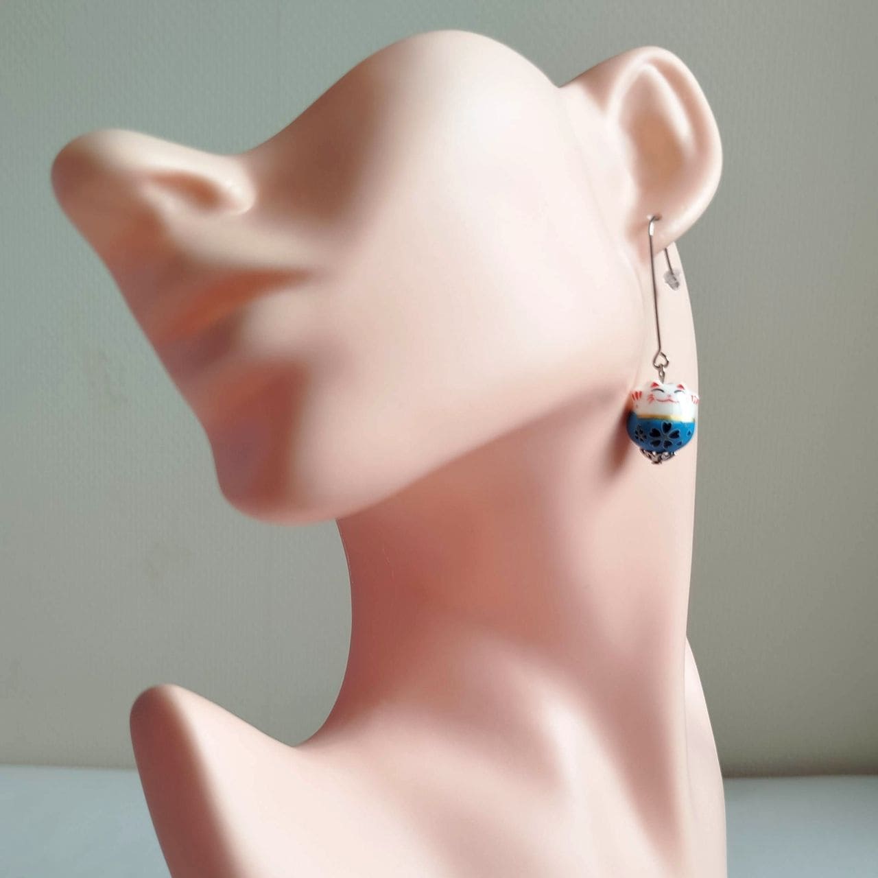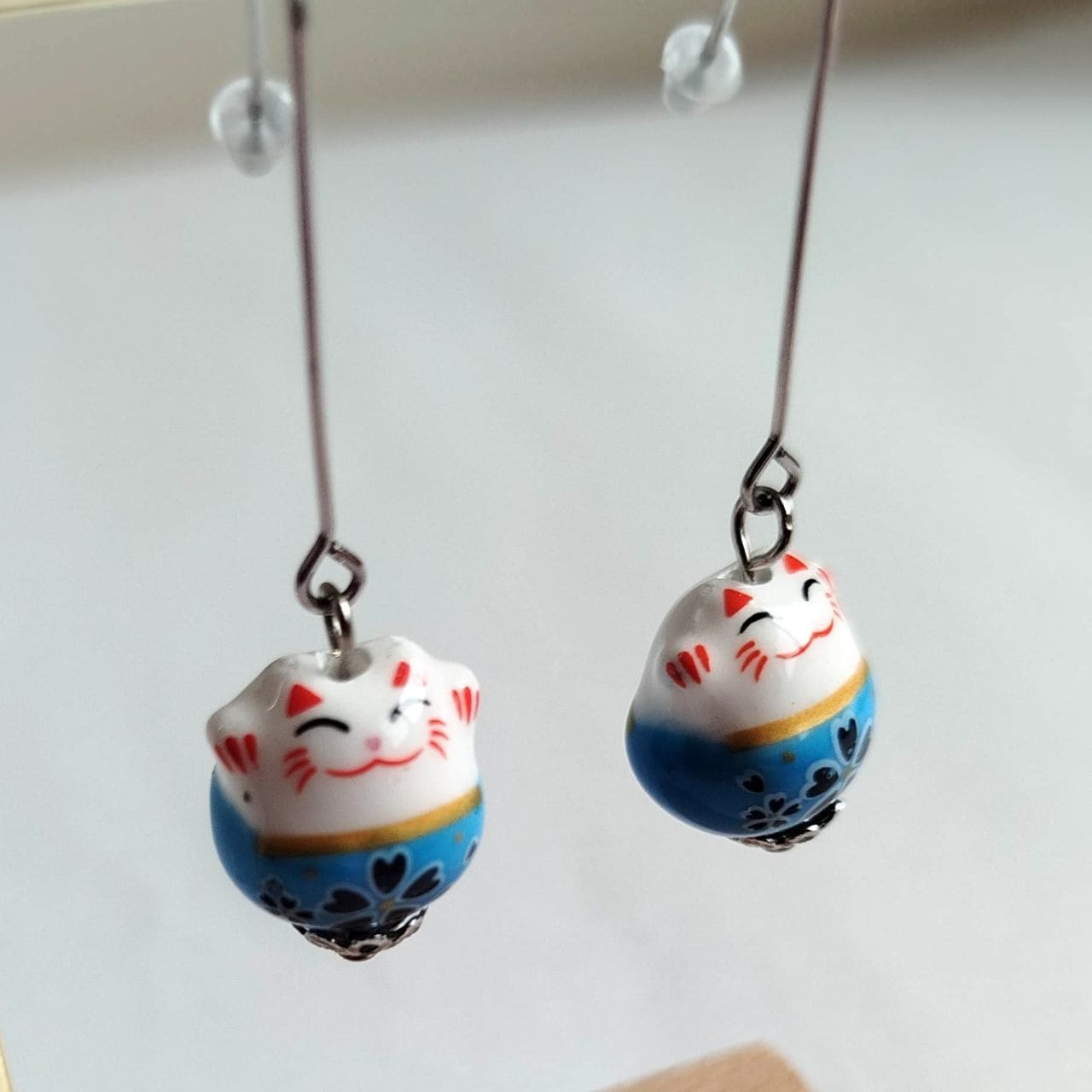 These charming porcelain Maneki-neko earrings bring a gentle sense of joy and good fortune into your everyday life.