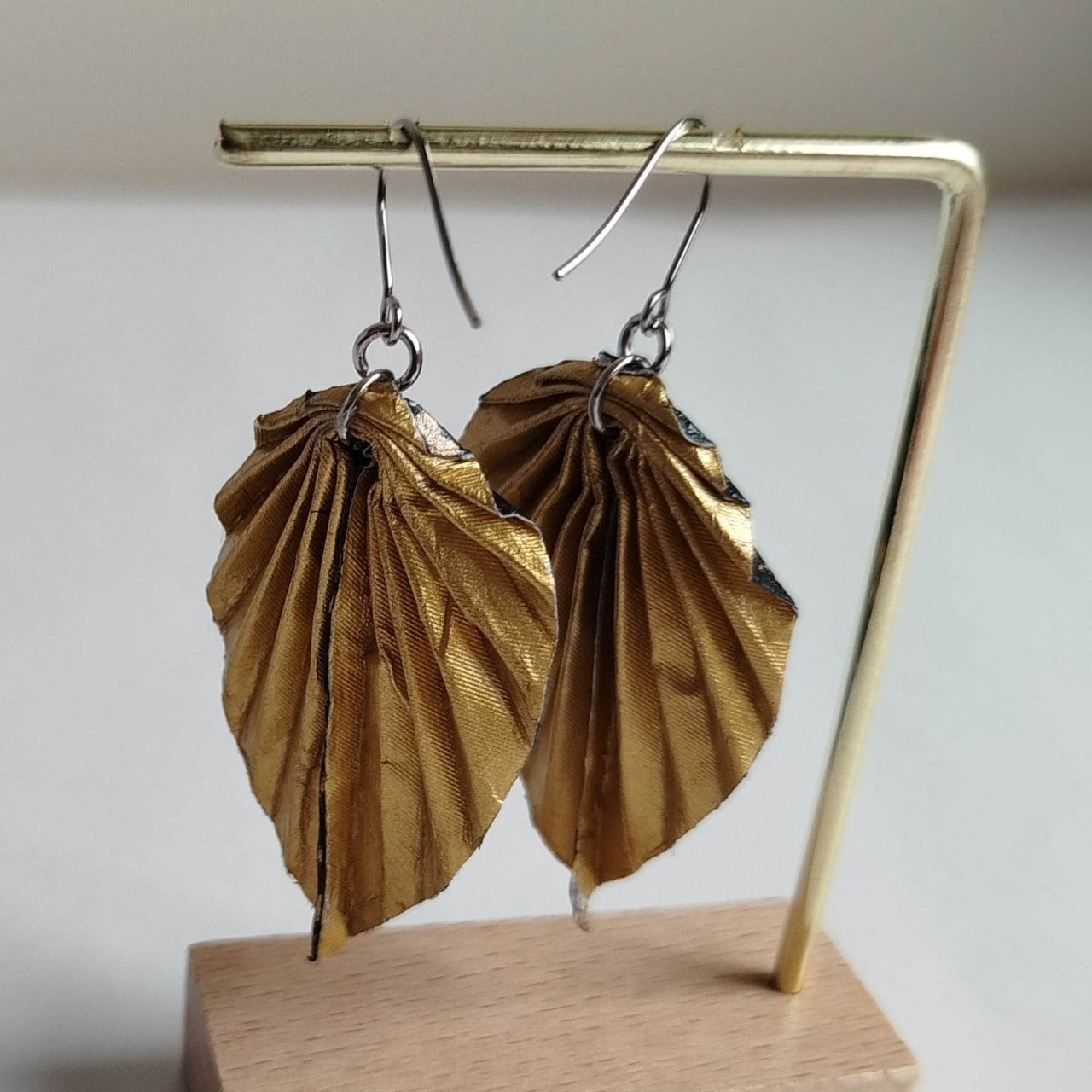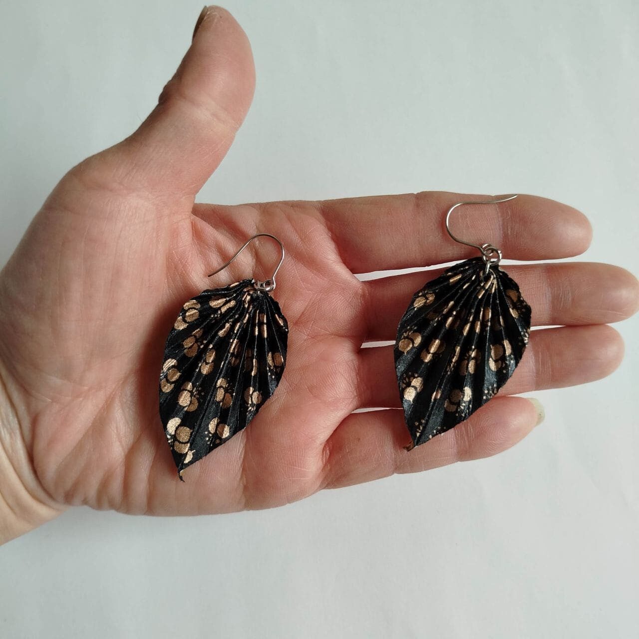 Crafted from hand-printed washi paper by Asai Chourakuen in Kyoto, these origami leaf earrings carry a quiet yet powerful message.